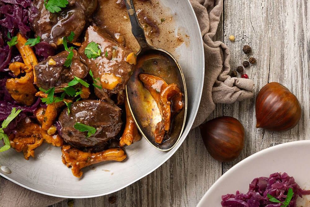 Von Juli bis Oktober laden wir Sie ein, die Schätze des Waldes zu entdecken: saftige Wildgerichte und aromatische Pilzkreationen, liebevoll zubereitet von unserem Küchenteam. Genießen Sie ein 4-Gang-Schloss-Menü, das die Vielfalt und Köstlichkeit der Saison perfekt in Szene setzt.